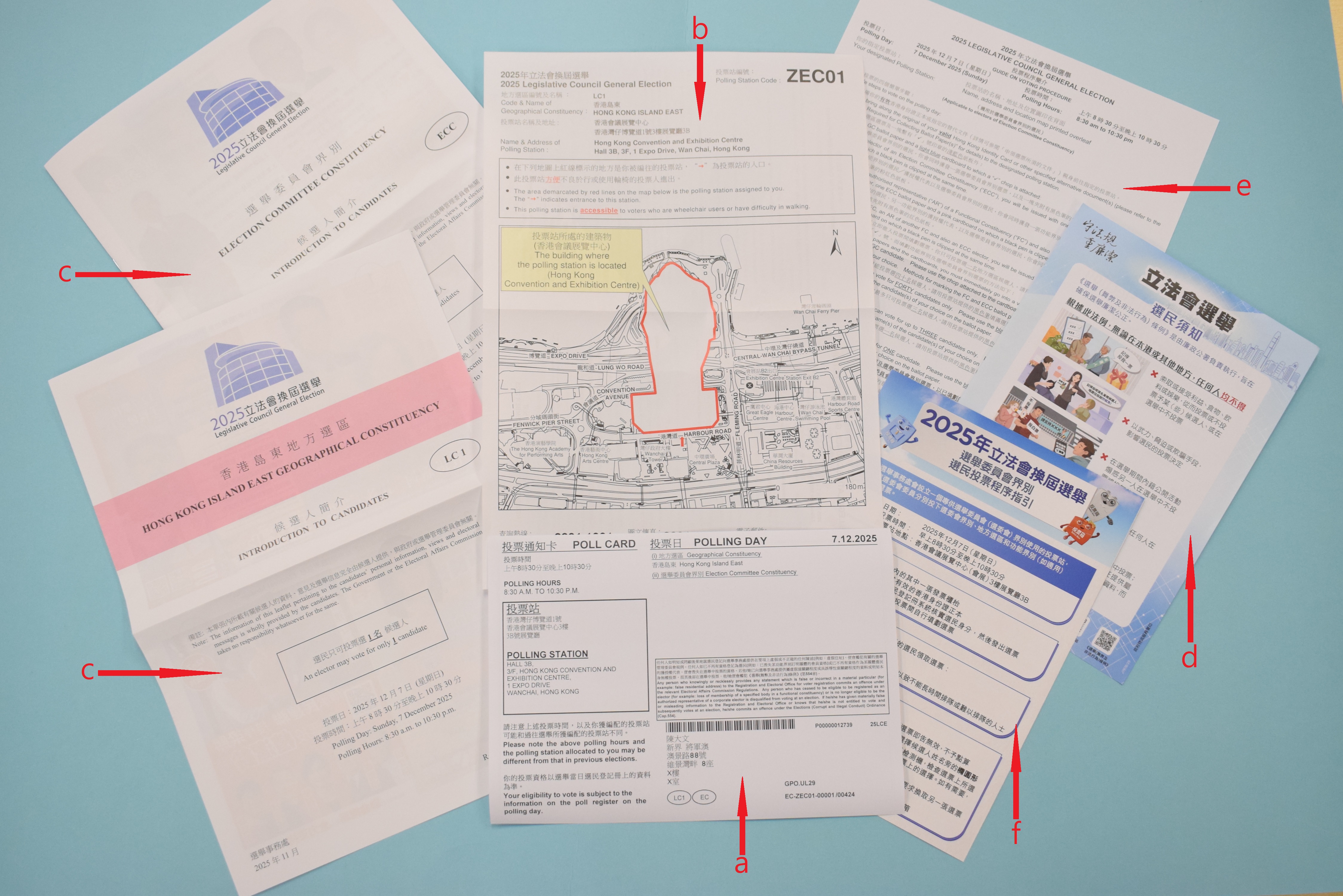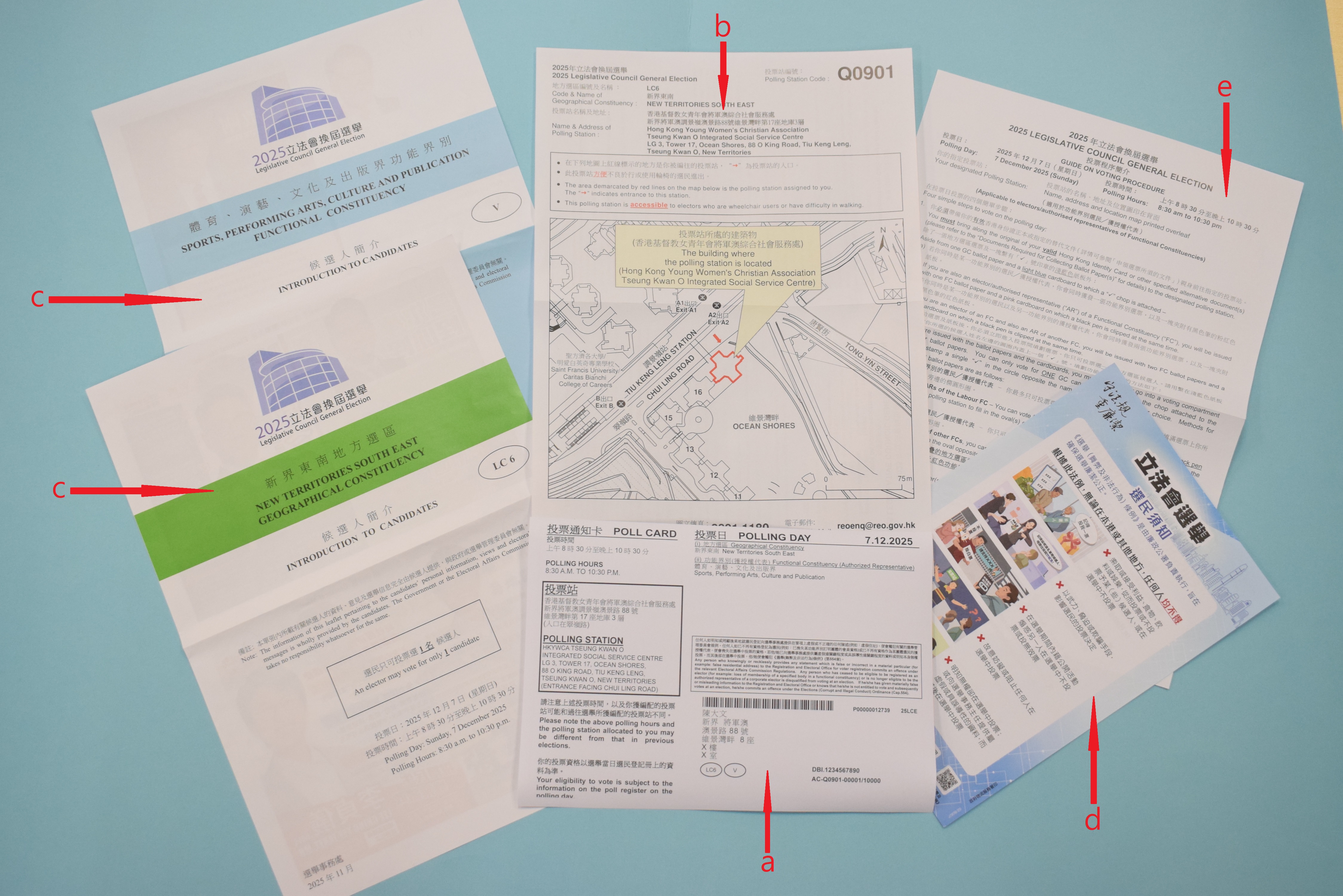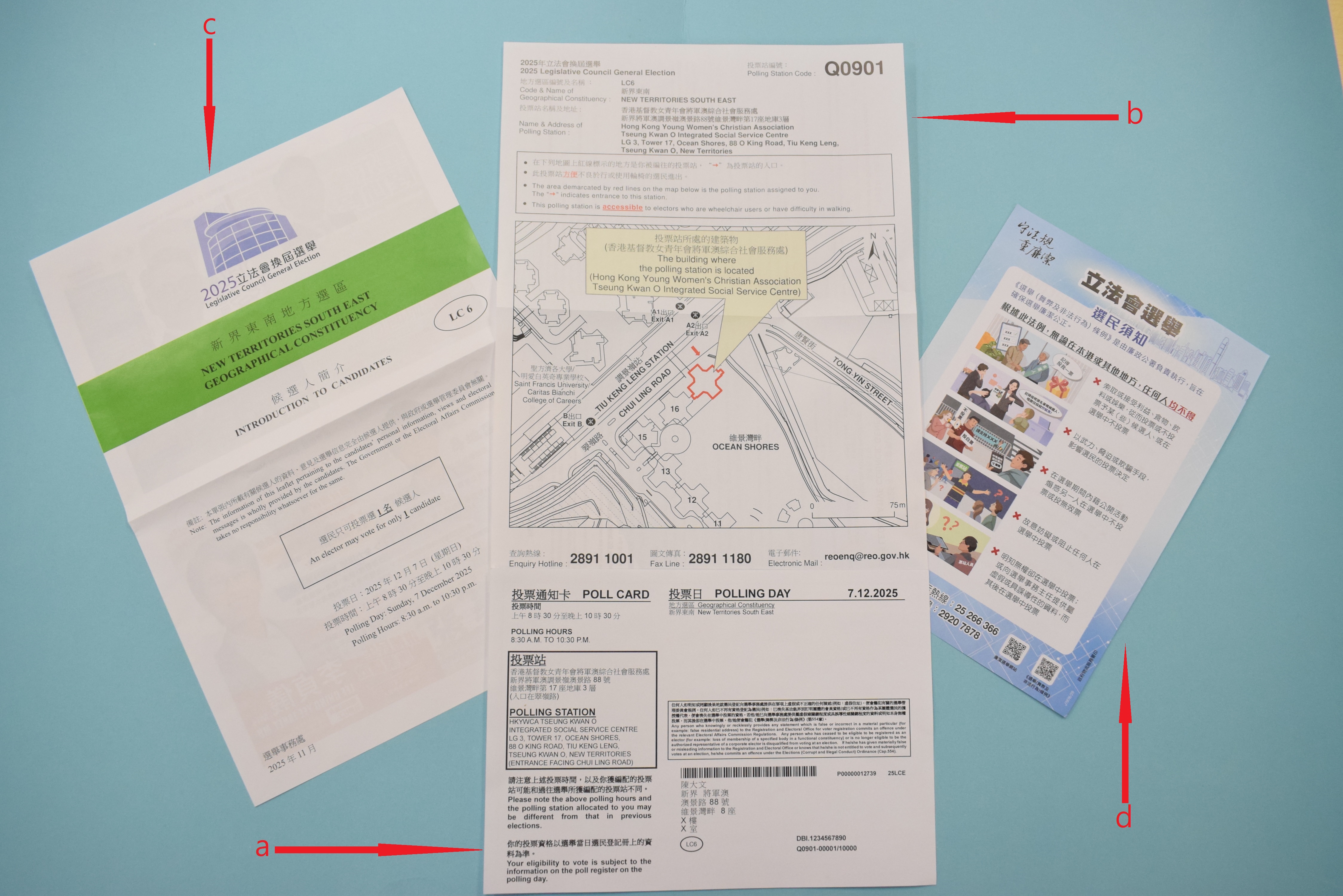 Electors should have received their poll cards and other related polling information. The poll cards state where electors should cast their votes. About 4.13 million registered electors of Hong Kong may go to the designated polling stations to cast their votes. The information received by these electors includes: