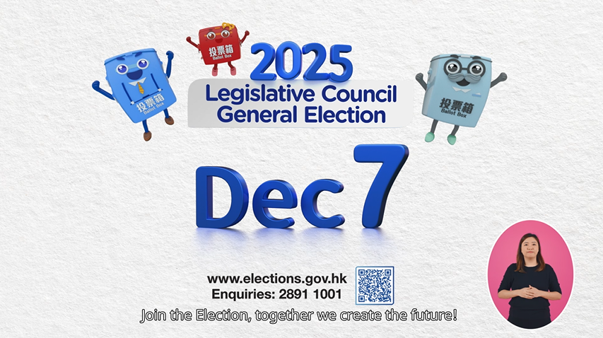 The Electoral Affairs Commission announced on 14 November 2025 the extension of polling hours of the 2025 Legislative Council General Election. The new polling hours will be from 7:30 am to 11:30 pm. The Constitutional and Mainland Affairs Bureau has updated the TV Announcements in the Public Interest (APIs) to remove reference to the original polling hours. If you have previously downloaded the APIs for usage, grateful if you could replace them with the updated versions downloadable from the below download link.